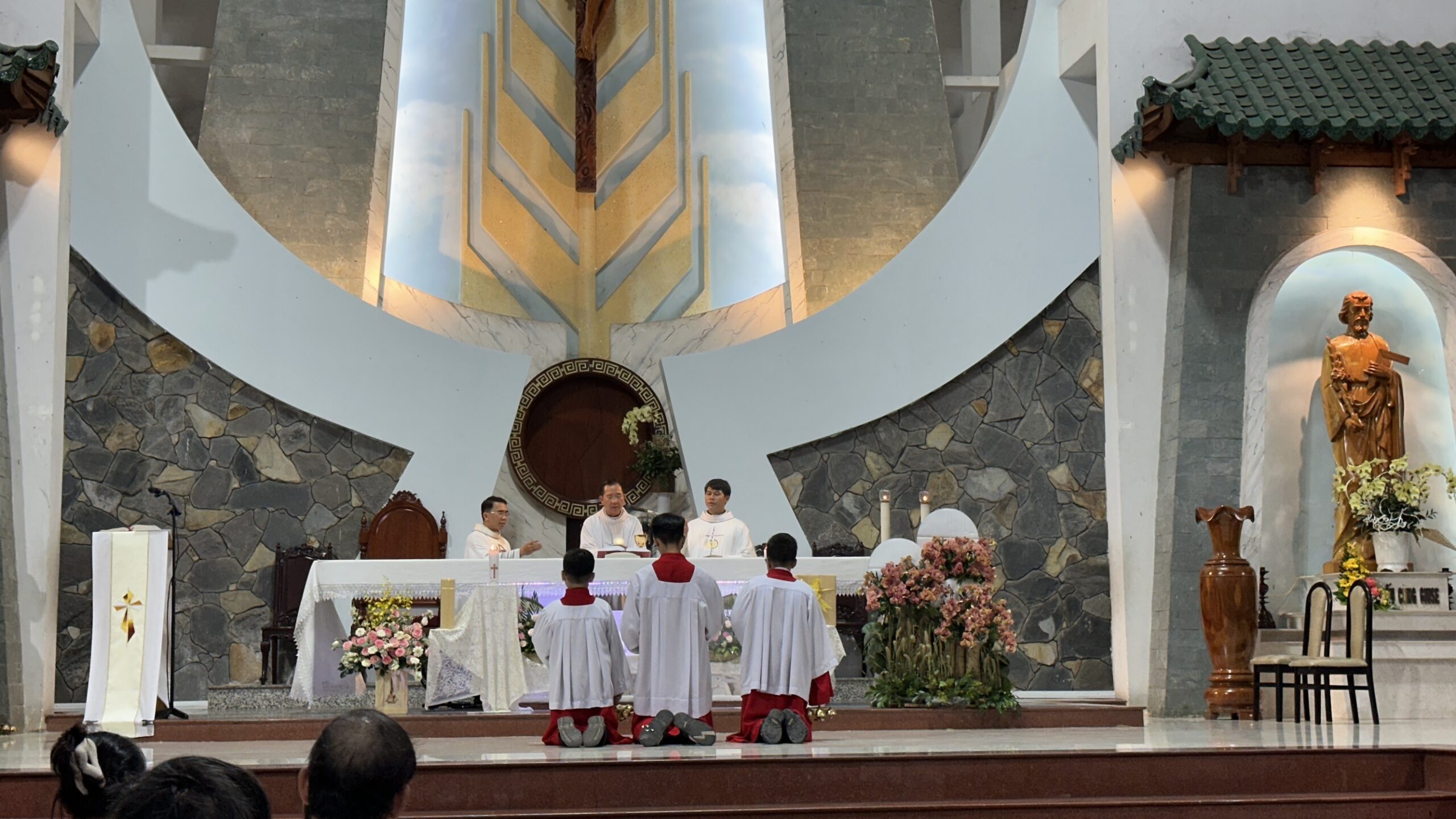 Thánh lễ được tiếp nối với phần Lời nguyện tín hữu, dâng lễ vật và phụng vụ Thánh Thể trong bầu khí thánh thiêng.