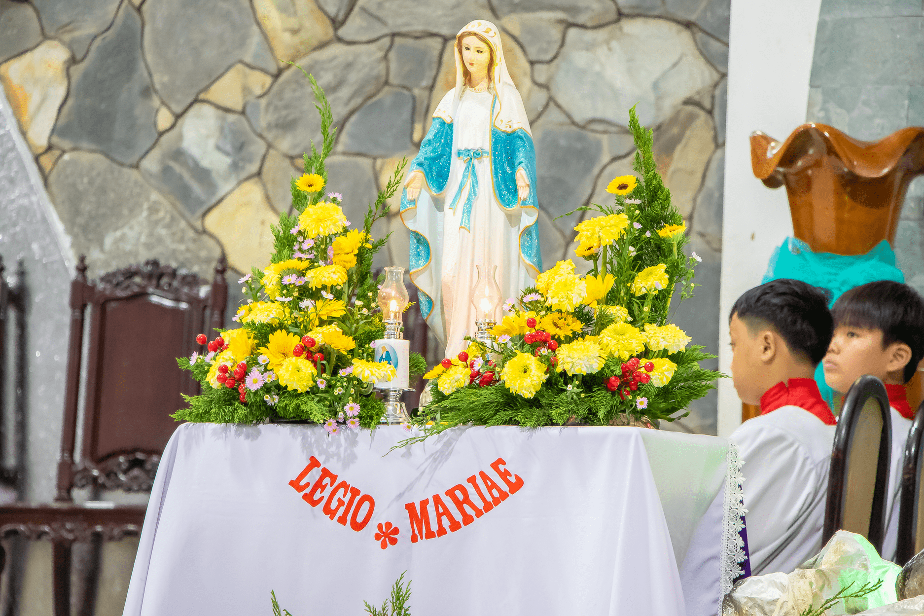 Thánh lễ do Cha Phêrô Lê Hoàng Chương chủ tế. Hiện diện trong thánh lễ có đông đảo cộng đoàn dân Chúa, quý tu sĩ nam nữ, thiếu nhi, các hội đoàn và đặc biệt là các hội viên Legio Mariae, cùng quy tụ tham dự trong bầu khí trang nghiêm và sốt sắng.
