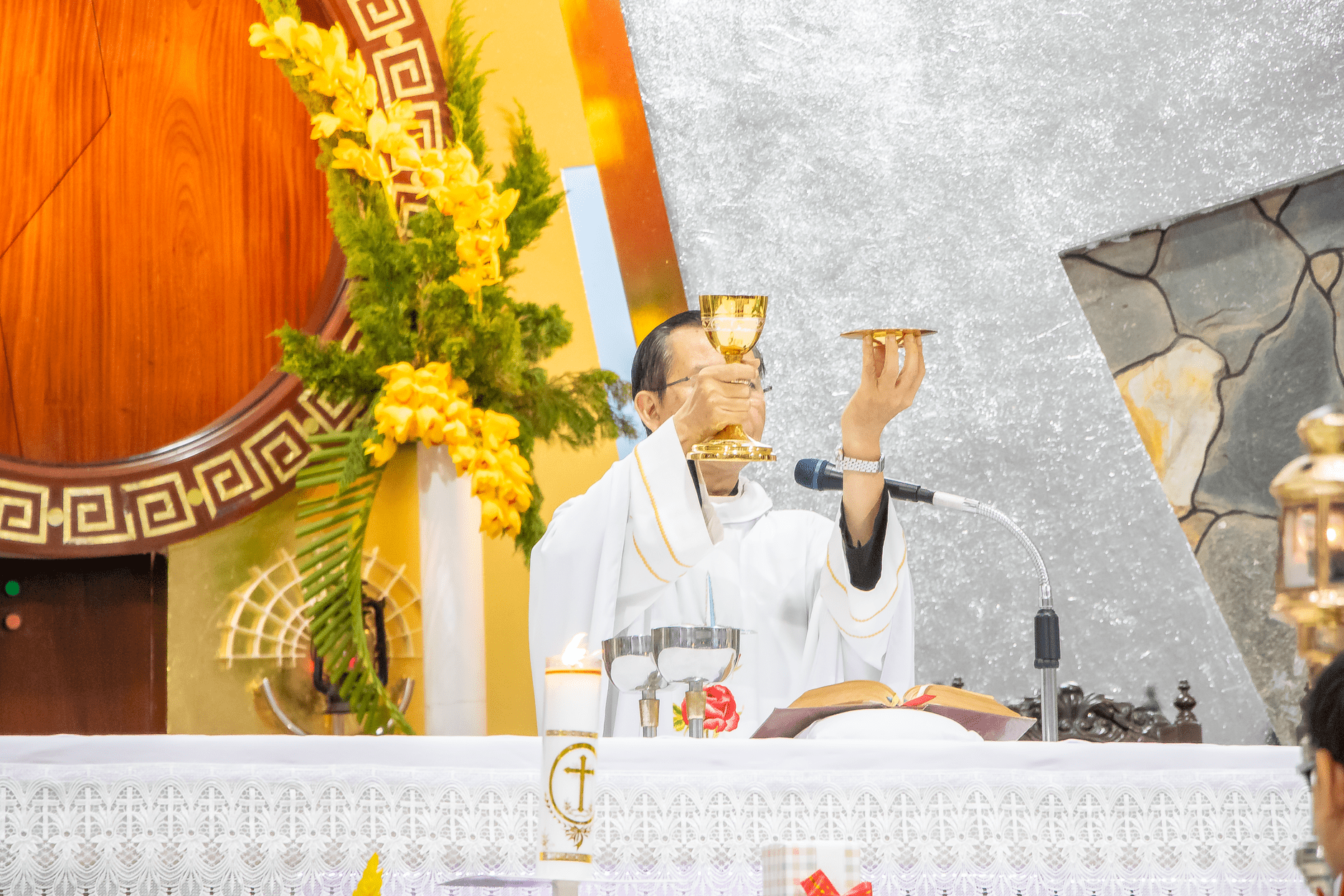 Thánh lễ tiếp tục với Phụng vụ Thánh Thể trong bầu khí trang nghiêm và sốt sắng.